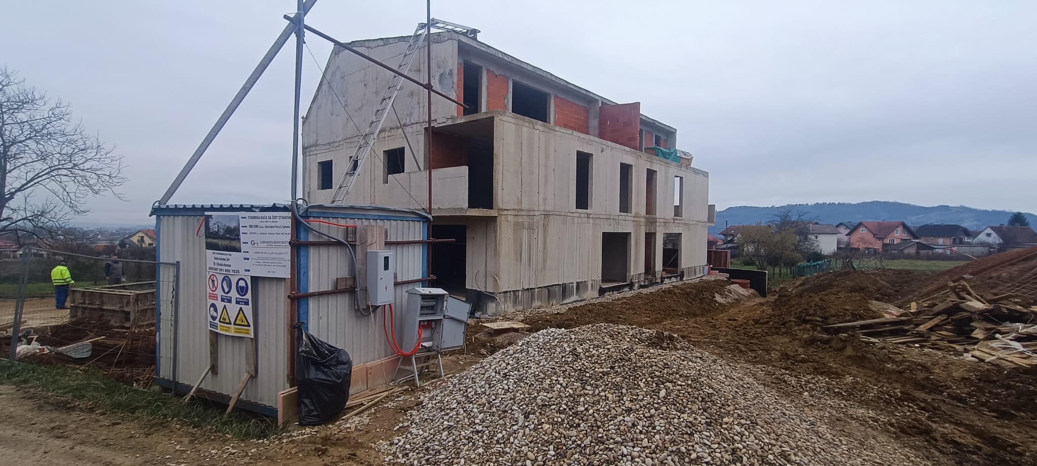 Zgrada se sastoji od 6 stambenih jedinica, 3 odvojene garažne jedinice, 6 spremišta te 6 vanjskih parkirnih mjesta.