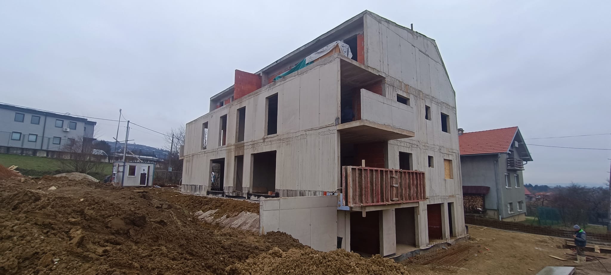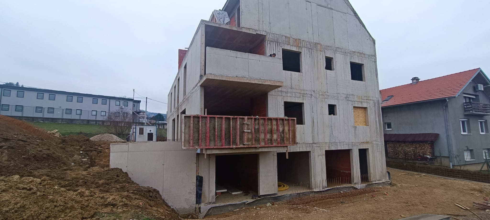 Nosiva konstrukcija planirana je u sustavu horizontalnih i vertikalnih armiranobetonskih nosivih elemenata (temeljna ploča, zidovi, grede/nadvoji i ploče međukatne konstrukcije, armiranobetonske kose ploče, s djelomično (nenosivom) ispunom od šupljih opečenih elemenata.